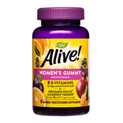 Alive! Women’s Gummy Multivitamin е висококачествена мултивитаминна формула, създадена специално за жени. Съдържа 16 витамини и минерали, включително 8 витамина от група В-комплекс за превръщане на храната в енергия и укрепване на нервната система.