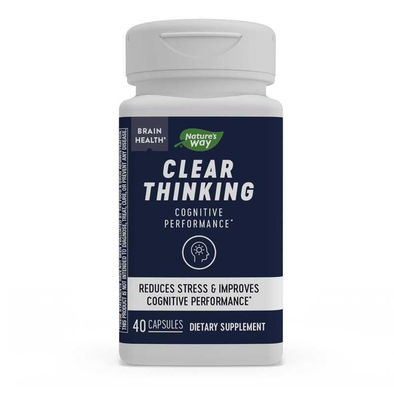 Clear Thinking на Nature’s Way съдържа екстракти от бакопа и ашваганда и цитиколин (CDP-холин) спомагащи за по-доброто функциониране на мозъка, повишаване на настроението и добрата памет.
