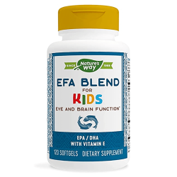 EFA Blend for Kids / Ефа Бленд за деца предоставя отлично съотношение на ключовите за организма есенциални мастни киселини: 20% ейкозапентаенова киселина (EPA), 30% докозахексаенова киселина (DHA) от молекулярно дестилирано рибено масло от аншоа, 9% гама-линоленова киселина (GLA) от масло от вечерна иглика, плюс витамин Е.