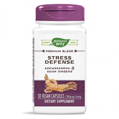 Основната съставка в добавката за контрол на стреса Stress Defense на марката Nature’s Way е аюрведичната билка ашваганда, която се използва вече над 3000 години за поддържане на здравето и лечение на различни заболявания. Към нея е добавен и екстракт от азиатски женшен, за да се получи уникално съчетание на природни дарове с мощен адаптогенен ефект, предназначено за облекчаване на стреса от забързаното ежедневие.