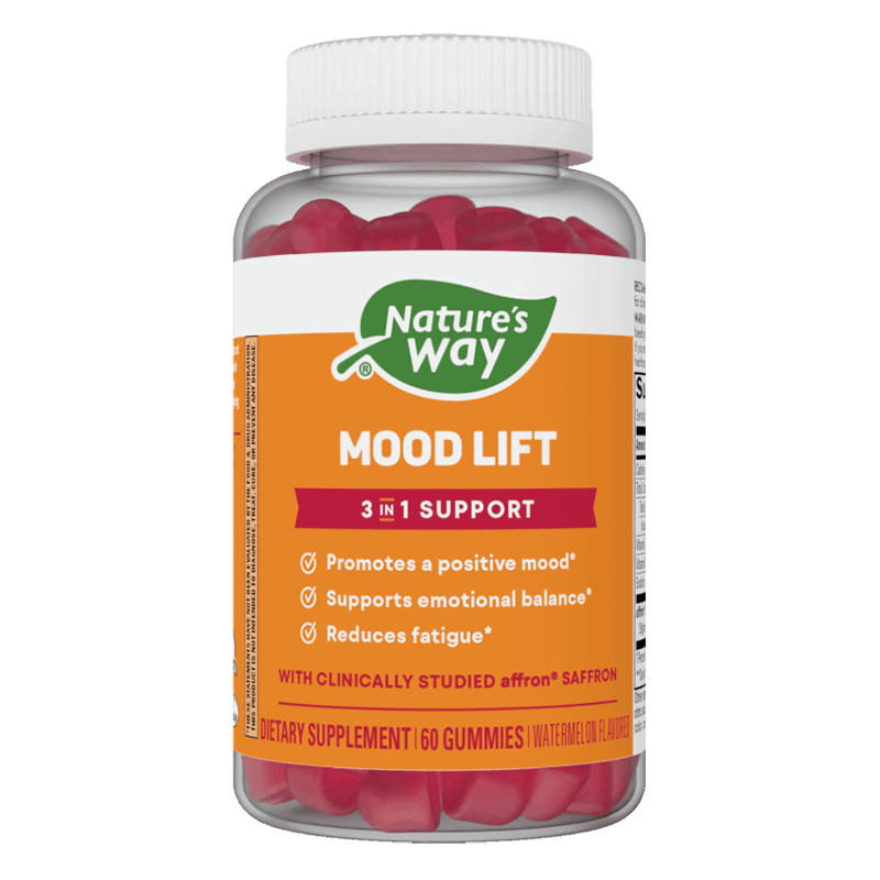 Mood Lift на американската компания Nature`s Way спомага за поддържане на емоционалния баланс и намалява умората. Съдържанието на шафран в този комбиниран продукт насърчава положителното настроение. Таблетките имат приятен вкус на диня и са с богато съдържание на витамин С и D3.