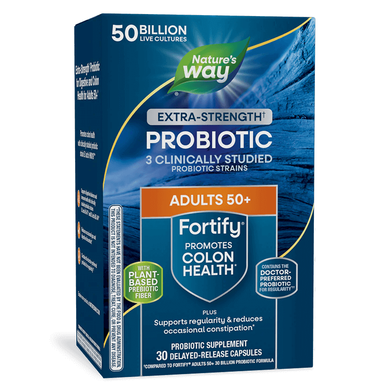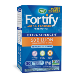 Фортифай™ Пробиотик за Възрастни 50+ Extra Strength е пробиотична добавка от най-висок клас с таргетирано действие при хора над 50-годишна възраст. Формулата й съдържа патентована комбинация от 10 щама лактобацили и бифидобактерии – 50 милиарда жизнеспособни бактерии, плюс пребиотици, които подобряват и обогатяват чревния микробиом в по-зряла възраст. Тя осигурява многобройни ползи, тъй като в по-късните етапи от живота ни чревната флора става все по-бедна и все по-малко стабилна, а от нея зависи доброто храносмилане и усвояване на важни нутриенти, цялостното ни здраве и имунитет.
