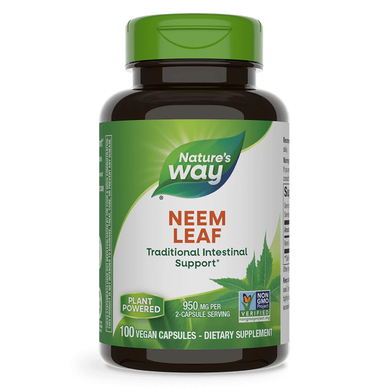 Екстракт от изсушените и стрити листа на растението Нийм, което има хилядолетна история на употреба в природолечението и е сред основните билки, използвани в Аюрведа. Листата от нийм притежават богат химичен състав – съдържат над 140 растителни съединения с мощен терапевтичен ефект срещу широк спектър здравословни проблеми. Най-значимо е въздействието им върху храносмилателната система, черния дроб и имунитета. Прилагат се още като антимикробно и антипаразитно средство за профилактика и терапия на различни инфекции.