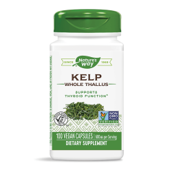 Продуктът на Nature’s Way съдържа висококачествен екстракт от келп – популярните кафяви водорасли, полезни за щитовидната жлеза, метаболизма и сърдечно-съдовото здраве. Приемът на екстракта е подходящ при хипофункция, затлъстяване и наднормено тегло, високи нива на холестерола и/или кръвната захар, атеросклероза, високо кръвно налягане. Алгинатът – една от активните съставки на някои видове келп, е полизахарид, действащ като радиопротектор и подпомагащ защитата на организма от агресивни лъчения.