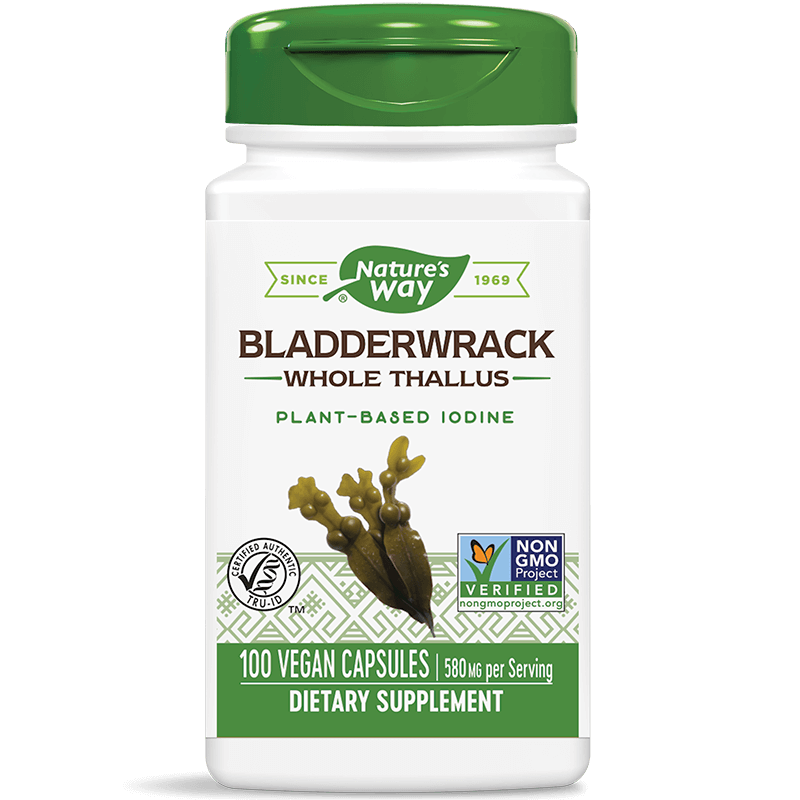 Кафявите водорасли (Fucus Vesiculosus), известни още като "морско грозде", се добиват от чистите води на Атлантическия и Тихия океан. Те са богат натурален източник на йод, селен, цинк, манган и витамини. Продуктът на Nature’s Way е сертифициран от Tru-ID™ и Non-GMO Project, което гарантира автентичност, чистота на състава и липса на ГМО.