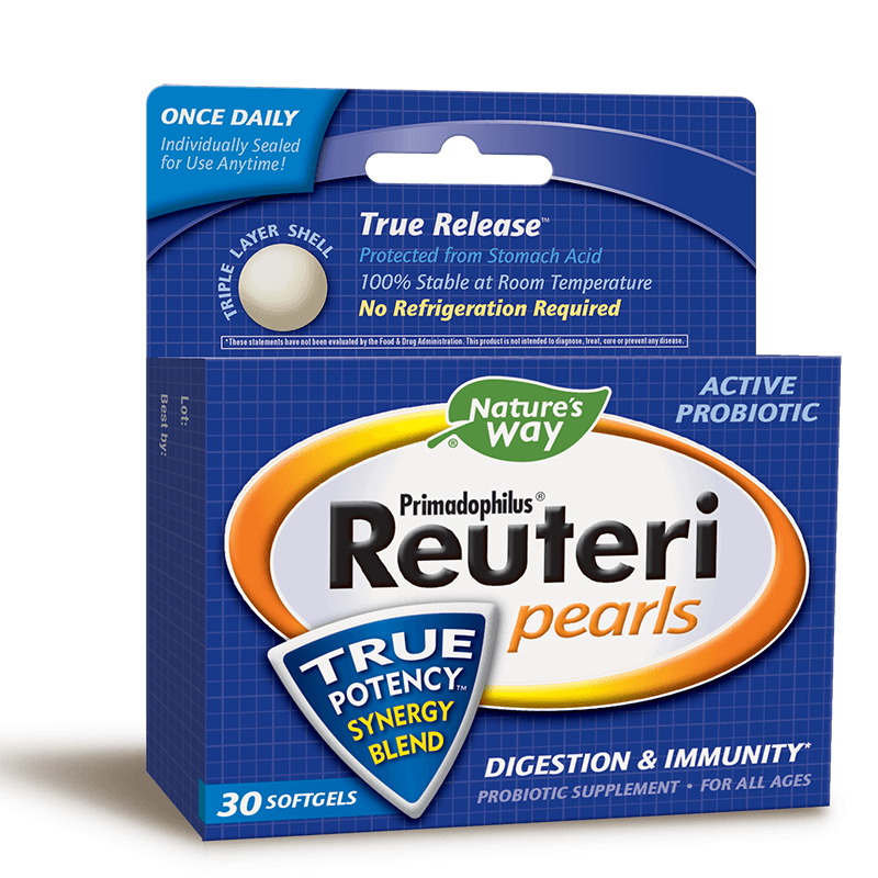 Примадофилус Реутери се предлага под формата на трислойна софтгел капсула, която предпазва пробиотиците от топлина и стомашната киселина и доставя съдържанието директно в червата.
