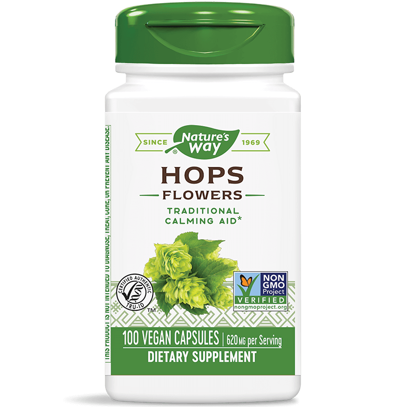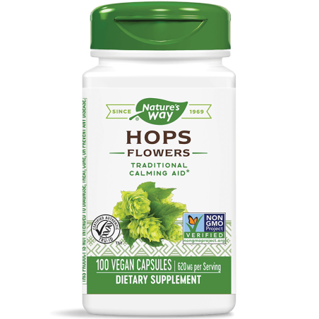 Hops Flowers / Хмел на Nature’s Way е висококачествен продукт с широк спектър на действие и без съдържание на изкуствени оцветители, аромати, консерванти, царевица, млечни продукти, сол, захар, мая, пшеница или ГМО.