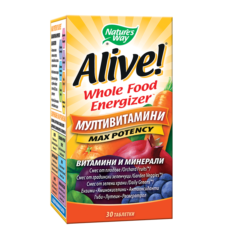 Смес от зелени храни /Daily Greens™/: Спирулина (микроводорасли), Келп (цял талус), Люцерна (лист, стебло), Ечемик (трева), Пшенична трева, Маточина (лист), Лимонена трева, Коприва (лист), Пресечка (лист, цвят, стебло), Хлорела (едноклетъчни микроводорасли), Плантан (лист), Синьо-зелени водорасли (микроводорасли), Кориандър (лист). Подсигуряващи аминокиселини: Глутаминова к-на, Левцин, Аспарагинова к-на, Аланин, Аргинин, Лизин, Серин, Валин, Треонин, Глицин, Изолевцин, Пролин, Фениланин, Тирозин, Хистидин, Метионин, Триптофан, Цистеин. | 133.33 mg | 133.33 mg |