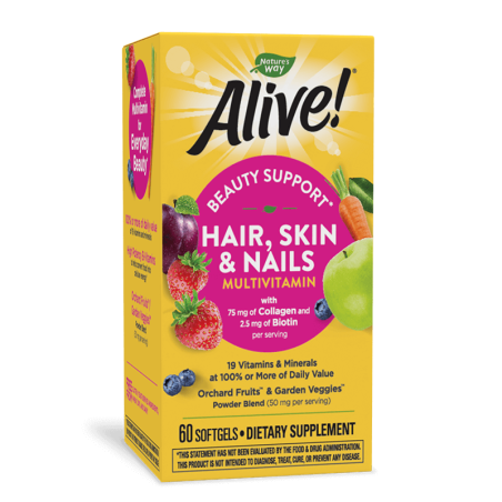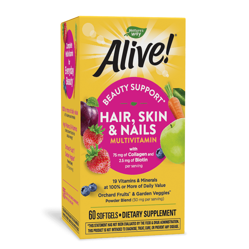 Alive! Hair, skin & nails Multi-Vitamin е уникална нутрикозметична формула за дълбоко възстановяване на кожата, косата и ноктите!