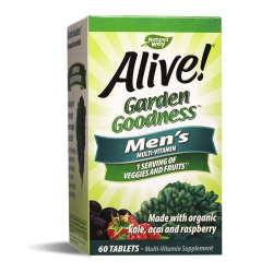 Alive! Garden Goodness™ Men’s Multi-Vitamin / Алайв! Гардан Гуднес Мултивитамини за мъже е специално балансирана формула за мъже осигуряваща на организма ценни хранителни вещества. Витамините от група B спомагат за превръщане на храната в енергия, за да почувстват мъжете прилив на енергия и в същото време осигуряват специализирана грижа: подкрепа за сърцето, мускулите, зрението, простата и имунната защита.